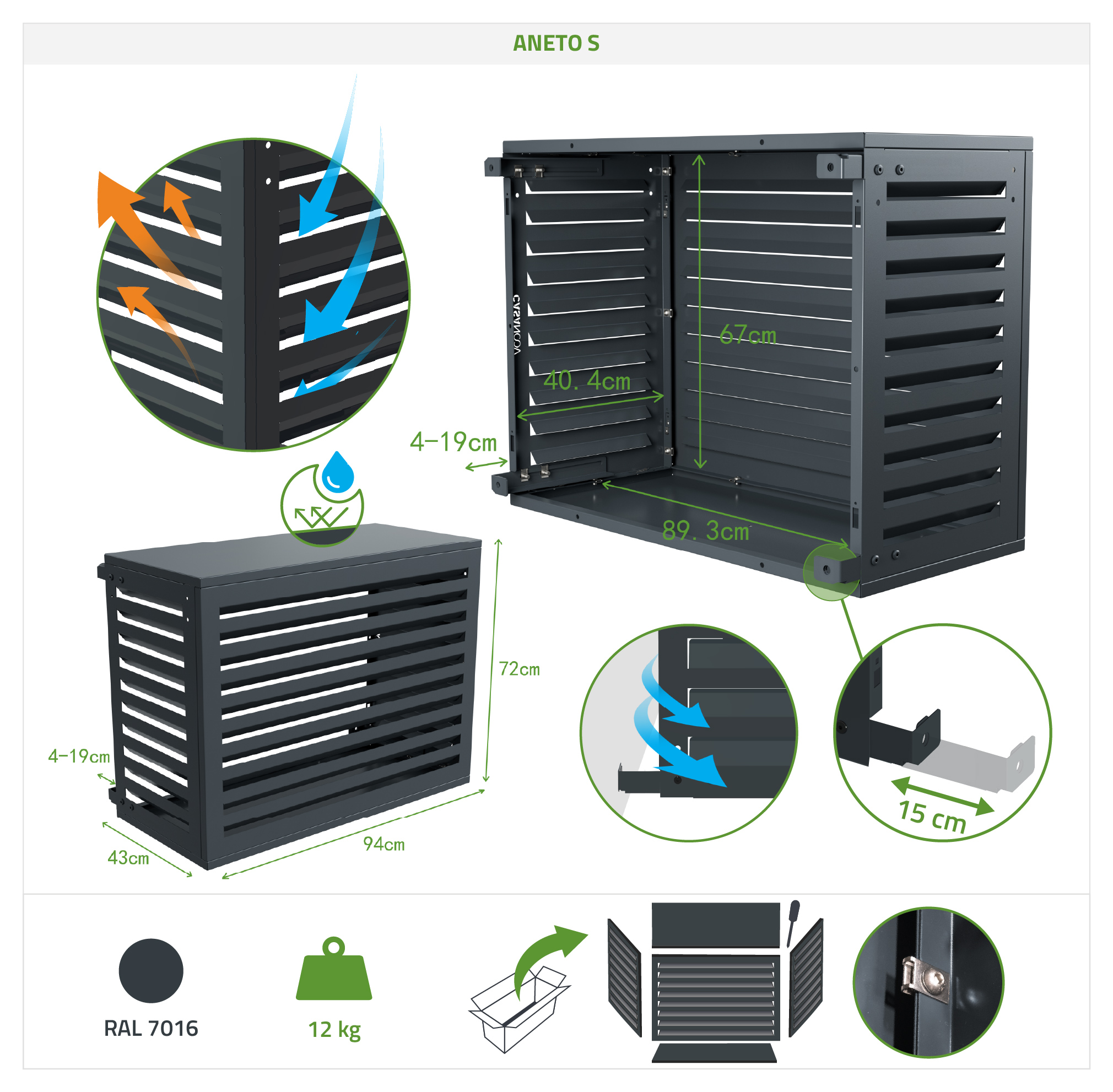 Aneto grey aluminum air conditioner cover with bottom panel - size S