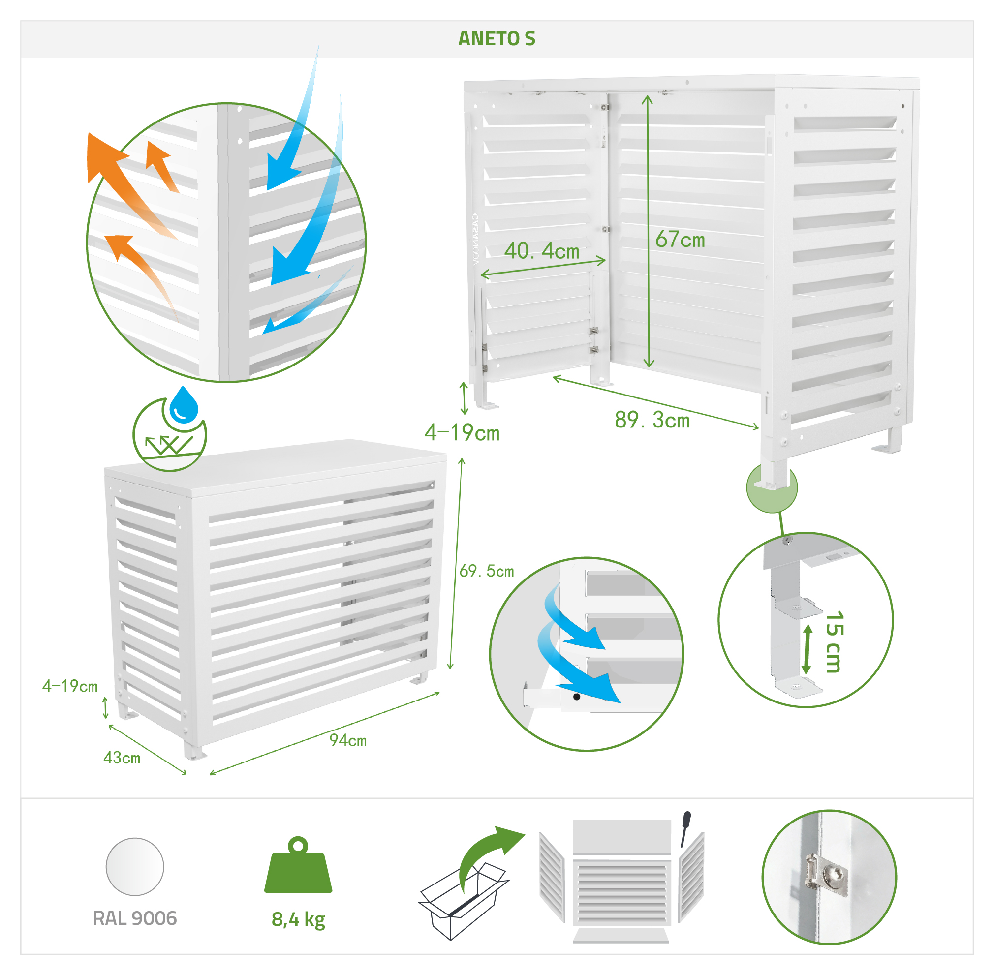 Aneto white aluminum air conditioning cover - size S